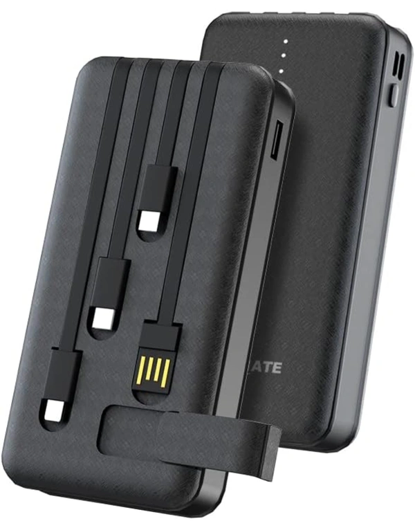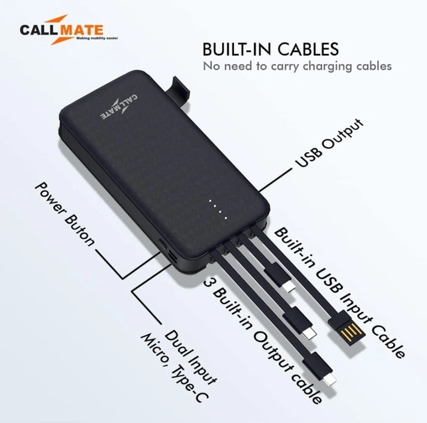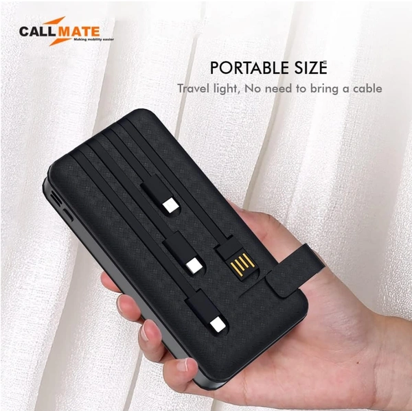 10000mAh Power Bank, 15W Fast Charging| Buit-in Cables | 4 Output Ports and 3 Input | for iPhone, Smartphones & Other Devices (15 W, Fast Charging) (Black, Lithium Polymer)