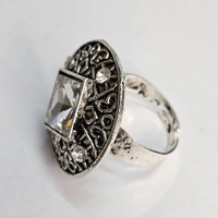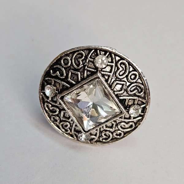 Adjustable Brass Crystal Silver Stone Ring