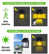 - 【Weather Resistant】outdoor solar wall light has a simple yet durable design and is made of high quality eco-friendly plastic material, this solar LED wall light is waterproof and can withstand rain, snow or other extreme weather conditions and is guaranteed to withstand inclement weather. This outdoor security light provides extra security lighting for your home, fences, stairs, pathways, porches, decks, driveways and gardens.