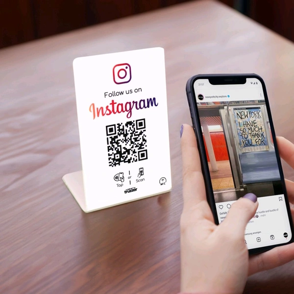 With the contactless Instagram NFC stands / displays, you can easily win new Instagram followers directly on site.