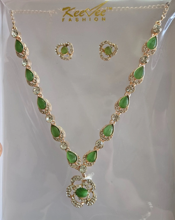 Gold Plated Gleaming Green Crystal Necklace Set for Girls and Women