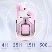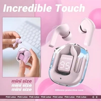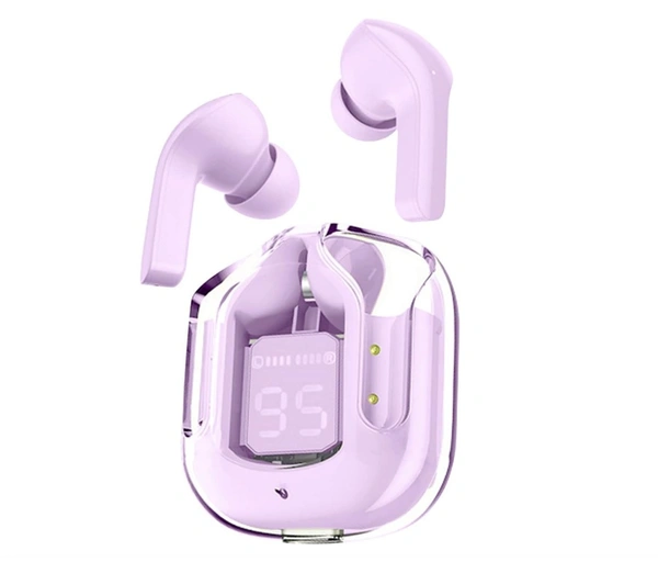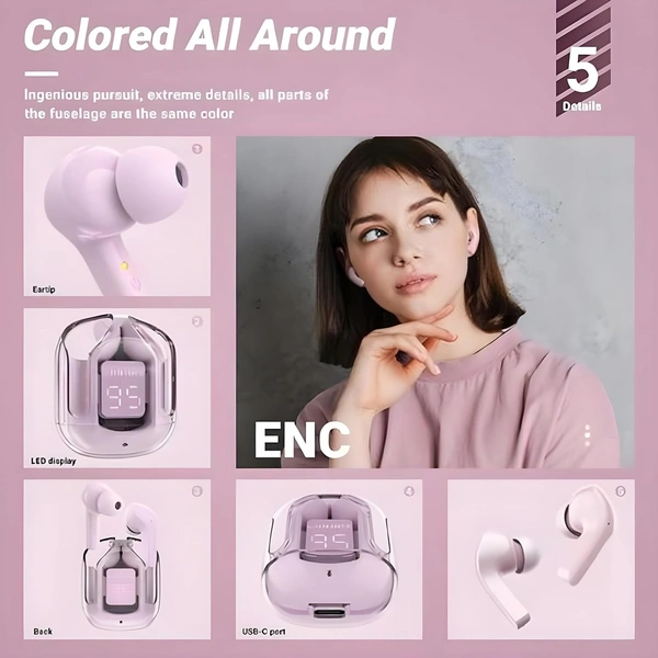 Transparent Digital Display True Wireless 5.0 Bluetooth ANC TWS Earpods - in Ear Power LED Display, IPX4 Water-Resistant Stereo, Active Noise Reduction, Touch-Control Earbuds with Charging Bin (Pink)